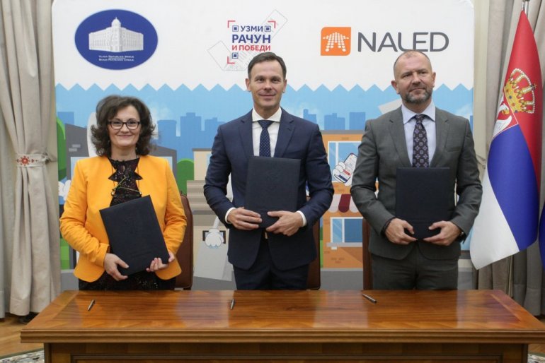 PRVI potpredsednik Vlade Srbije i ministar finansija Siniša Mali potpisao je danas ugovore o dodeli dva stana sa dobitnicima izvučenim u drugom kolu nagradne igre „Uzmi račun i pobedi“ i tom prilikom pozvao građane da uzimaju fiskalne račune i tako doprinesu suzbijanju sive ekonomije.