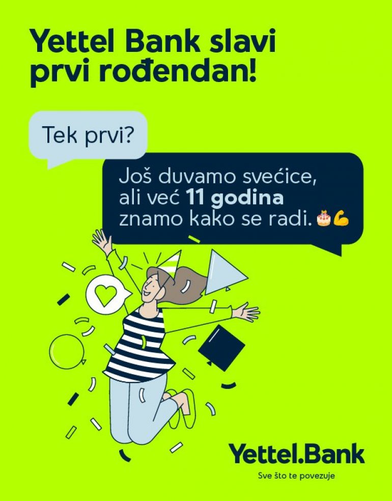 - Pre godinu dana napravili smo prvi korak ka hrabroj promeni bankarstva, ne samo za naše korisnike, već za celokupno stanovništvo. Trenutno imamo više od 500 hiljada korisnika koji imaju aktivan makar jedan bankarski proizvod, preko 120 hiljada izdatih DinaCard Yettel Bank kartica, beležimo porast primalaca zarade za 40%, kreditnog portfolija za blizu 70% i imamo 40% porasta štednje po viđenju. Ponosni smo na ova postignuća, ali sve ovo je tek početak. Pred nama su sada godine stabilnosti i organskog rasta sa fokusom na nove funkcionalnosti i proizvode - rekao je Aleksandar Bogdanović, predsednik Izvršnog odbora Yettel Bank.