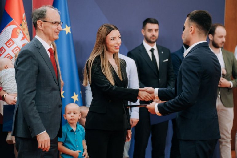 - Uz aktuelan Program stanova za mlade, danas ponosno predstavljamo program finansijske podrške za najboljih 35 biznis ideja mladih do 35 godina, kao još jednu važnu meru usmerenu ka ekonomskoj, demografskoj i društvenoj budućnosti Srbije. Ovaj program je inicirao doskorašnji premijer Miloš Vučević, koji je uvek verovao u energiju mladih i važnost strateške podrške novim generacijama. Na njegovoj realizaciji radili su timovi posvećenih profesionalaca koji kroz predan rad čine da se programi sprovedu na pravi način - istakla je ministarka.