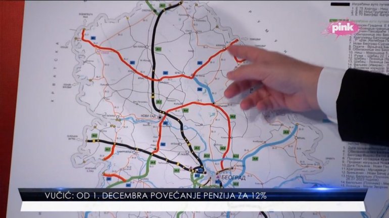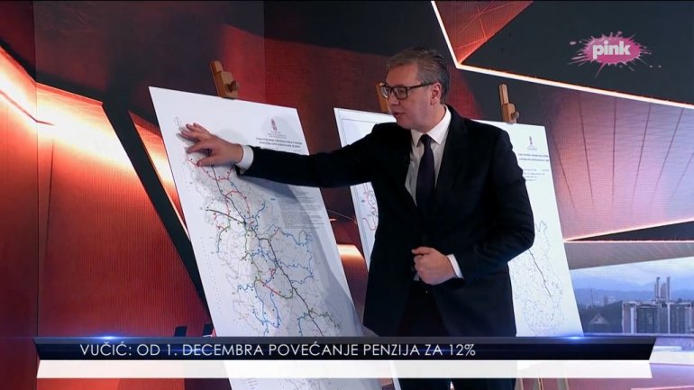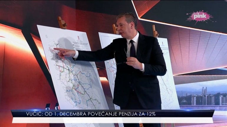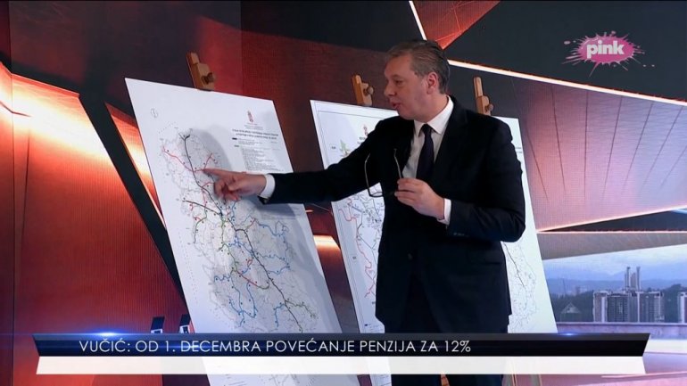 PREDSEDNIK Srbije Aleksandar Vučić pokazao je večeras u emisiji na TV Pink sve velike infrastrukturne projekte koji se grade u Srbiji.