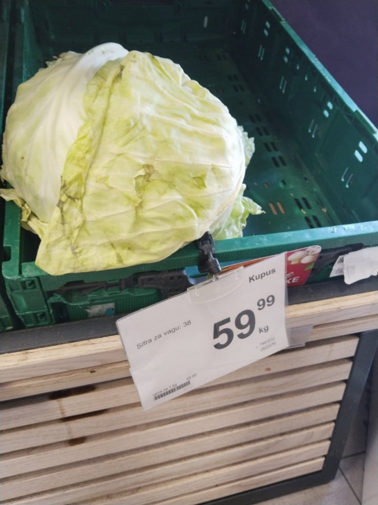 Kupus je ranije koštao između 70 i 80 dinara, sada je njegova cena 60 dinara po kilogramu.