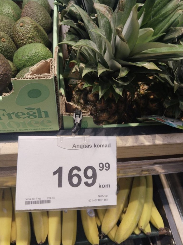 Komad ananasa je 170 dinara, a kilogram banana 223 dinara.