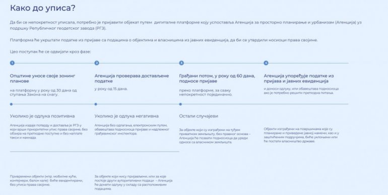 ZAKON o posebnim uslovima za evidentiranje i upis prava na nepokretnostima daje građanima priliku da konačno budu ,,svoji na svome”, registrovani kao vlasnici objekata u kojima žive ili rade, i stavlja tačku na nelegalnu gradnju.