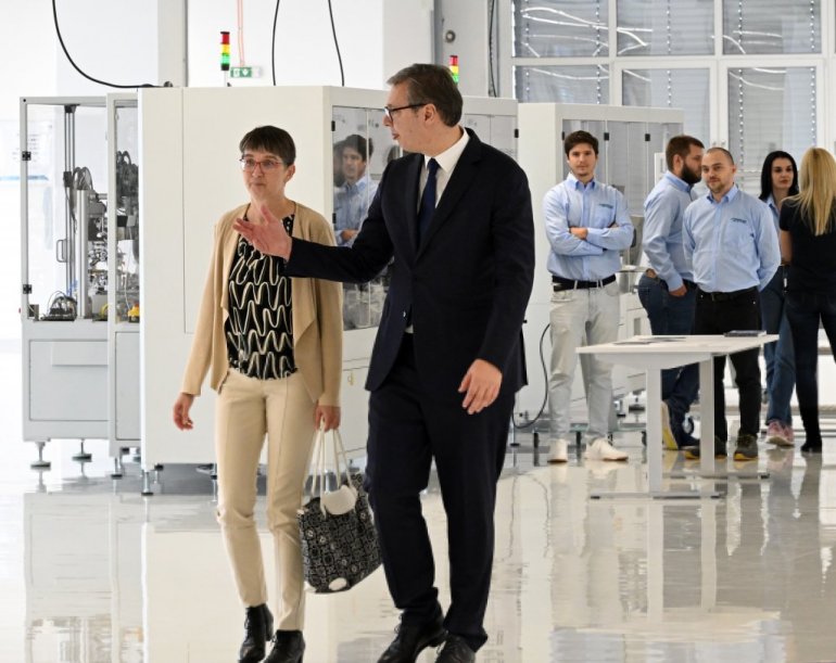 - Nemačka, bavarska tehnologija najbolja na svetu. Otvaraju drugu fabriku, imaju mnogo dobre ljude ovde, što je naše blago. Ja verujem da će da razmišljaju i o trećem pogonu. Voli Jozef Milbauer Srbiju. Ovo je velika investicija, 29,5 miliona evra. Možemo da se pohvalimo da će kod nas da se prave pasoši za 30, 40 zemalja. Godišnje u proseku tri miliona dokumenata izdamo. Zato je svaki napredak u ovom pogledu neverovatno važan. Gledaćemo da preko ovih mašina izdajemo radne dozvole. Nemoguće je da ljudi stignu sve, mašina može sve - rekao je predsednik.