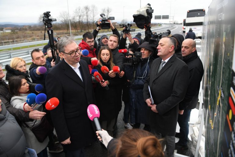 - Moramo da nastavimo radove, moramo konačno da uradimo i krenuli smo u pregovore da se hitno nastave radovi od Požege preko Užica, Gorjana, Zlakuse, Sevojna do Užica i Bele zemlje, da to uradimo svakako, da bi nam Zlatibor bio mnogo bliži, a onda ćemo malo da sačekamo i da uradimo ostatak do Kotromana prema Višegradu. U zapadnom delu sledeće godine završavamo deonicu Slepčević-Badovinci, dakle, to je do Pavlovića ćuprije. Kada idete putem Šabac-Loznica u selu Slepčević, imate takođe brzu saobraćajnicu gde skrećete da biste išli na teritoriju Semberije, na teritoriju bijeljinske opštine. Dakle, to će biti brza saobraćajnica. U tom delu takođe imamo Kuzmin-Sremska Rača, to je zapadno - sremski deo, tih 19 kilometara, jer nam je potreban taj prelaz sa BiH, dakle, imamo ulaz u severni deo Semberije i Republike Srpske i BiH. Dakle, tih 19 kilometara je već u martu ili aprilu, najkasnije do maja - rekao je predsednik Vučić.