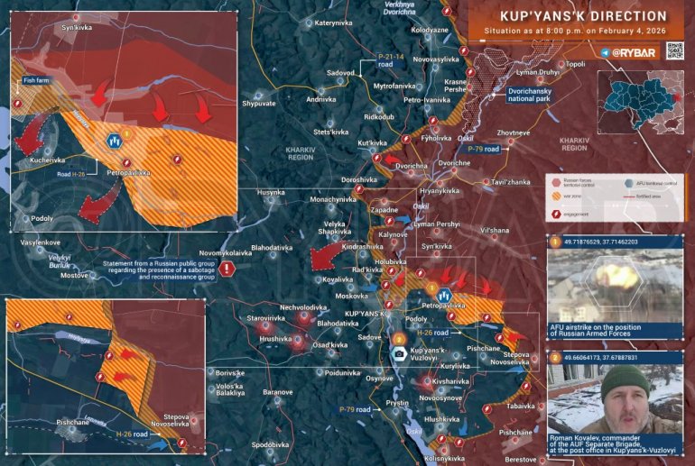 Ruski operateri dronova i aviona takođe sistematski deluju na prelazima preko reke Oskol, kroz koje neprijatelj sistematski prevozi pojačanja na istočnu obalu. Situacija u samom Kupjansku ostaje napeta.