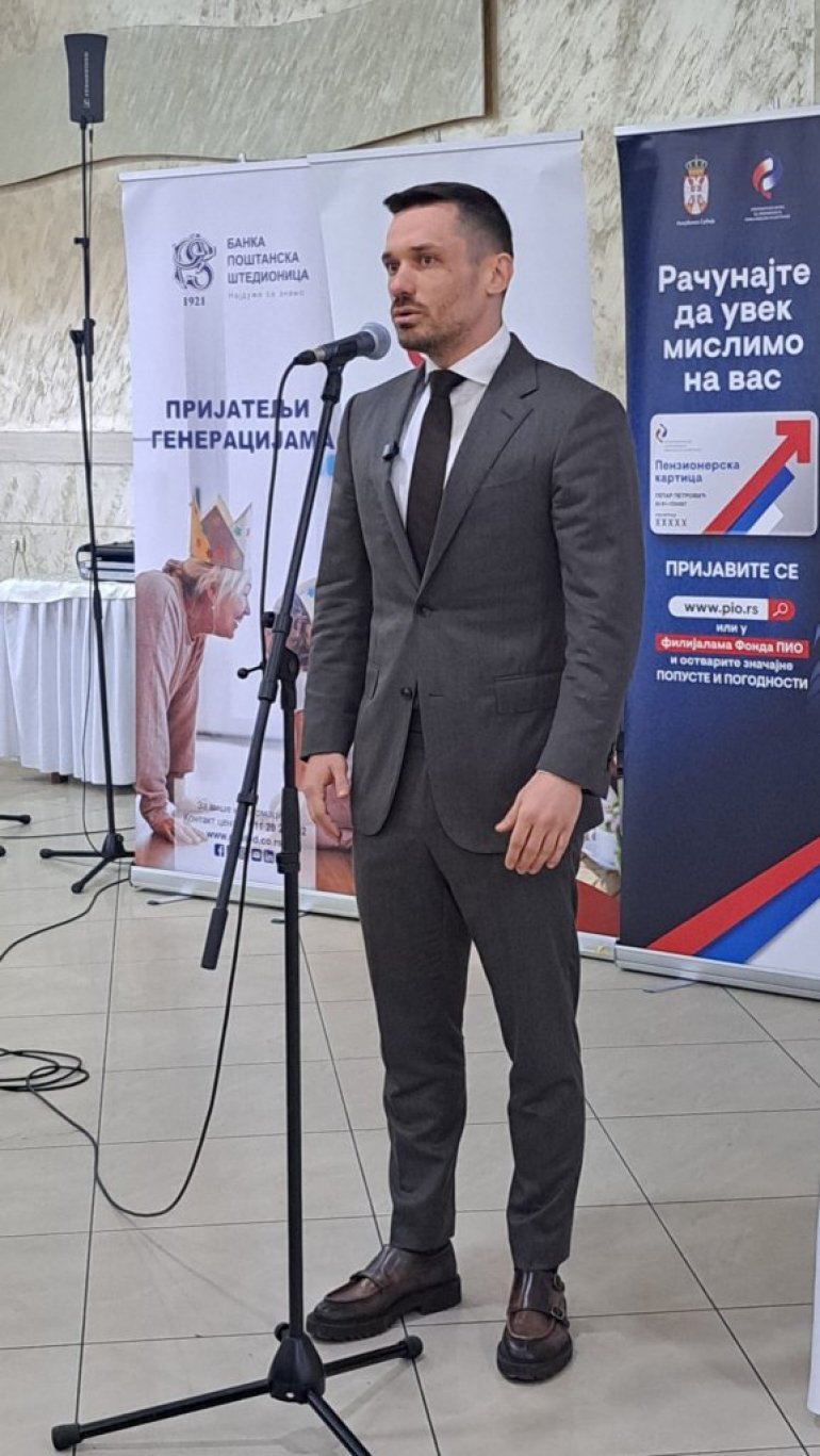 Aranđelovačkim penzionerima obratili su se Relja Ognjenović, direktor Fonda PIO, prof. dr Andreja Savić, predsednik Saveza penzionera Srbije, i Goran Orlić, predstavnik lokalne samouprave.