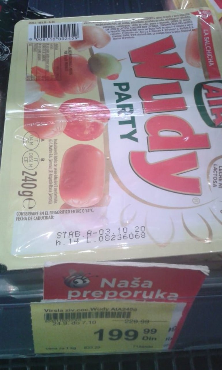Wudy party viršle u pakovanju od 240 grama bile su sa rokom trajanja do 3. oktobra.