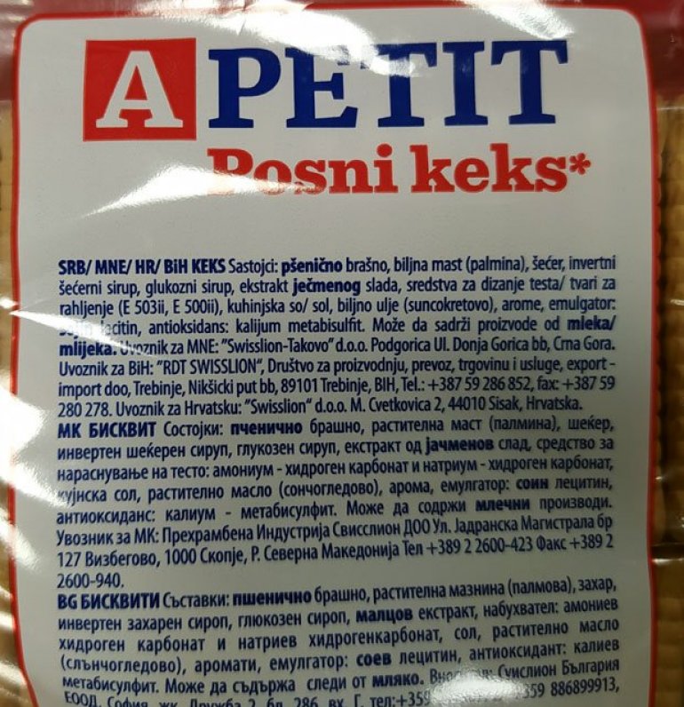 Jer, na većini artikala koji nose oznaku "posno" u deklaraciji stoji da može sadržati jaja ili mleko u tragovima. Time se proizvođači ograđuju, jer i posne i mrsne napolitanke, medeno srce, supe, štapići ili bombone izlaze sa istih traka na mašinama u njihovim pogonima. Kompanije su sada zaštićene i na papiru, jer je poslednjim dopunama Pravilnika o deklarisanju, označavanju i reklamiranju hrane, dozvoljeno da i na ovakvim proizvodima stoji oznaka "posno".