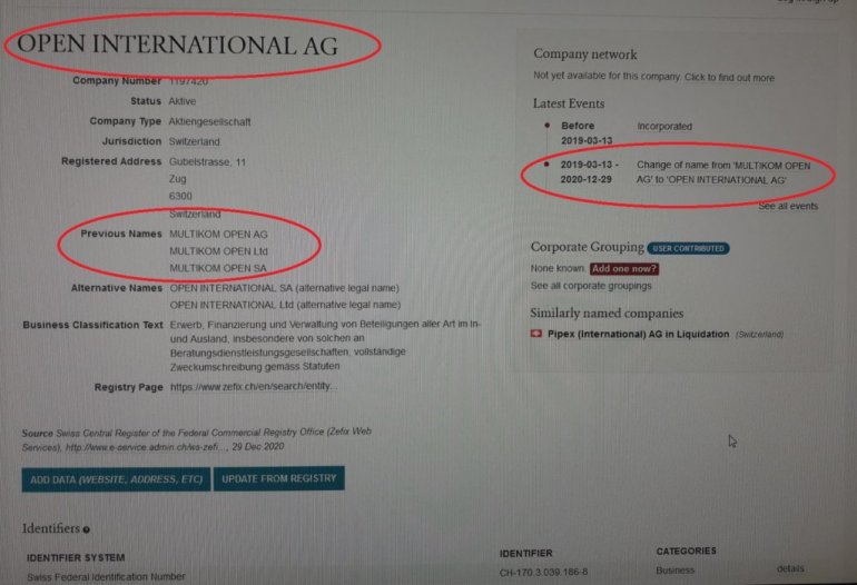 PREMA javno dostupnim podacima lider Stranke slobode i pravde Dragan Đilas do 28. decembra prošle godine imao kompaniju pod nazivom MULTICOM OPEN AG, registrovanu u Švajcarkoj. Međutim, kompanija 29. decembra dobija novo ime OPEN INTERNATIONAL AG.
