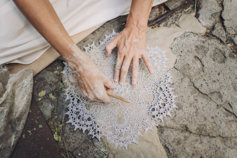 Njena delikatna ali moćna dela ostavljaju jak utisak na prolaznike jer na prvi pogled njihove zamršene šare podsećaju na tradicionalne heklane miljee, ali umesto tekstila, čipka je direktno utkana u beton.