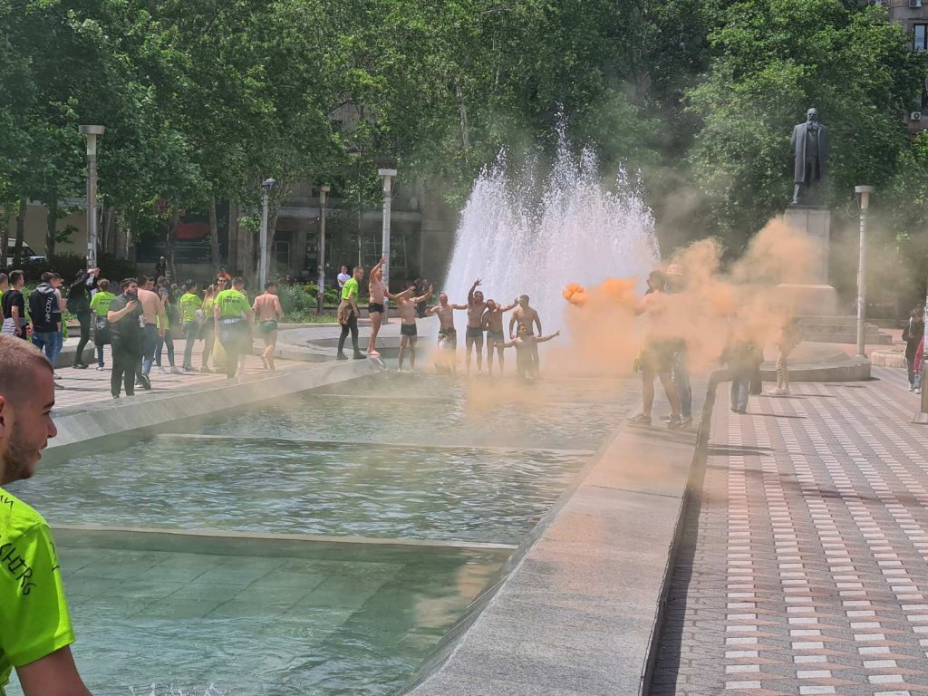 MATURANTI ŠIROM SRBIJE SLAVE KRAJ SREDNjOŠKOLSKOG OBRAZOVANjA: Tradicionalno kupanje u fontani u Beogradu, trubači u Požarevcu (FOTO)