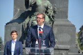 VUČIĆ POLOŽIO VENAC NA SPOMENIK KOSOVSKIM JUNACIMA: "Srpski duh je nepokoran i nepokolebljiv i nikada nije ustuknuo pred osvajačima" (FOTO)