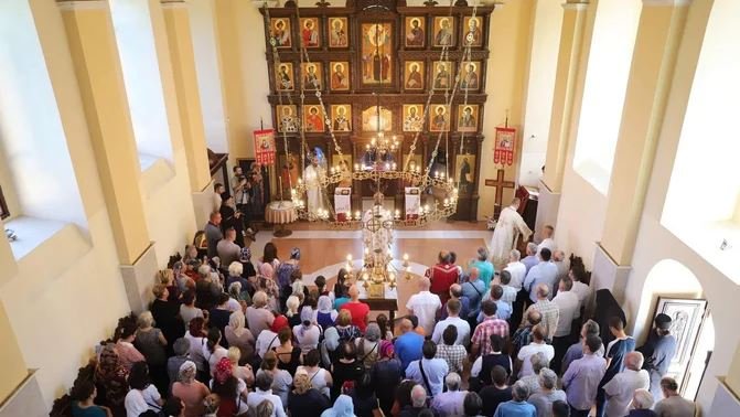 PATRIJARH PORFIRIJE U VINČI: Poglavar SPC služio liturgiju u hramu Svetih apostola Petra i Pavla