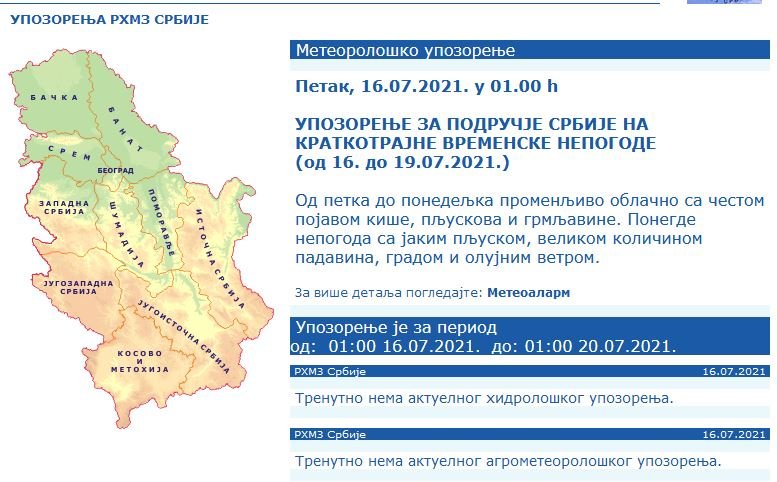 VREMENSKA PROGNOZA ZA PETAK 16. JUL: Pogledajte kakvo nas vreme očekuje danas, RHMZ izdao novo upozorenje - važi do 19. jula (FOTO)