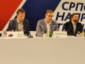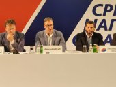 VUČIĆ ODRŽAO SASTANAK U BEOGRADU: Veliki broj pristalica SNS dočekao predsednika (FOTO/VIDEO)