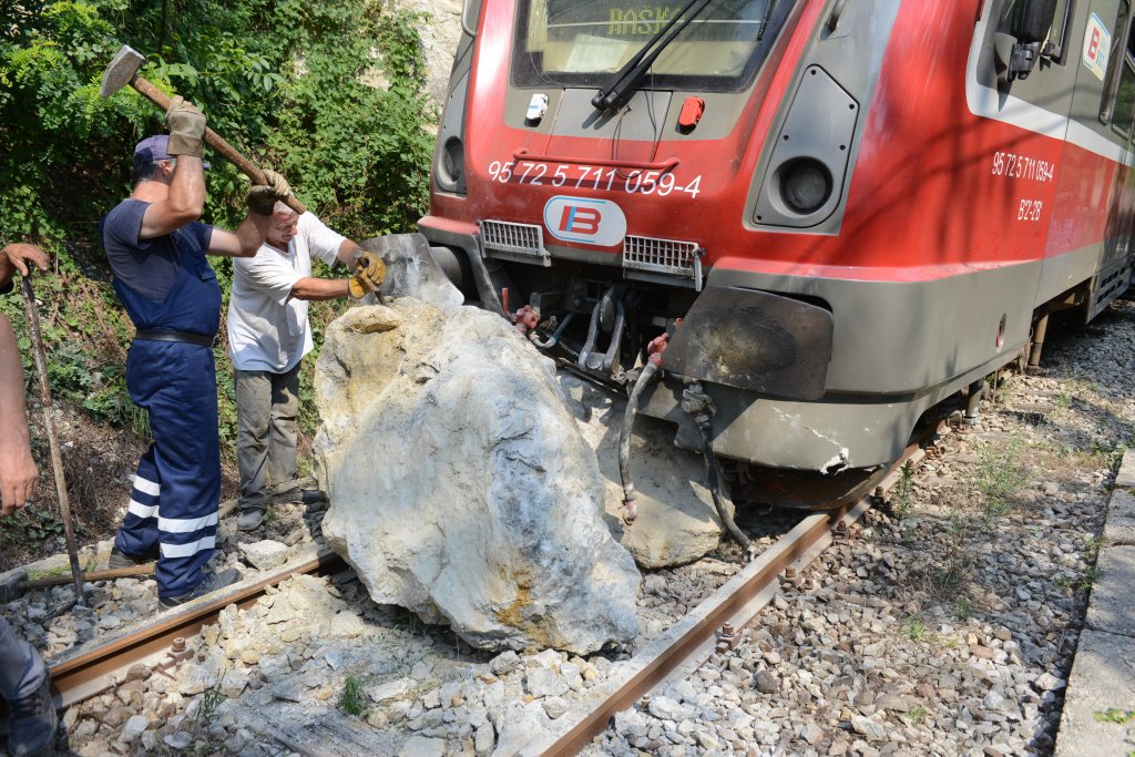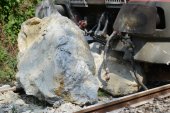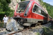 FOTOGRAFIJE SA MESTA ŽELEZNIČKE NESREĆE: Voz naleteo na stenu, pa izleteo sa šina (FOTO/VIDEO)