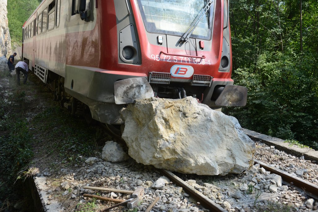 FOTOGRAFIJE SA MESTA ŽELEZNIČKE NESREĆE: Voz naleteo na stenu, pa izleteo sa šina (FOTO/VIDEO)