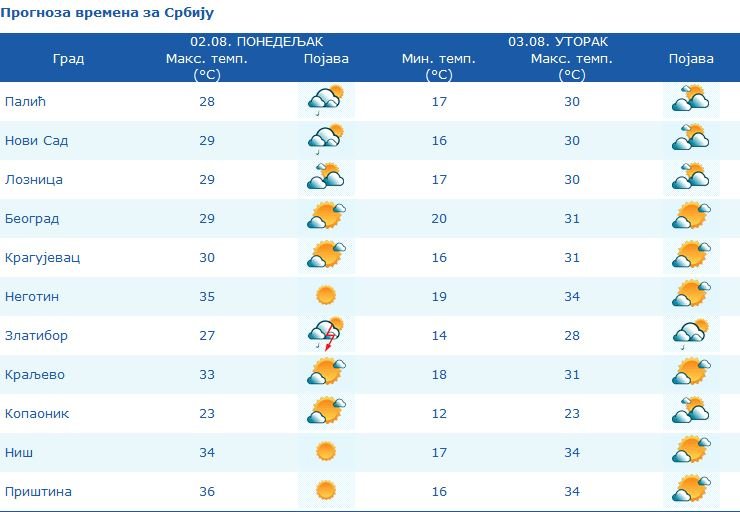 VREMENSKA PROGNOZA ZA PONEDELjAK 2. AVGUST: Moguća kiša, pljuskovi sa grmljavinama, a evo kako će biti narednih sedam dana (FOTO)