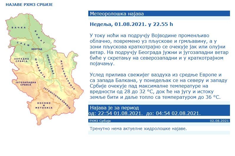 VREMENSKA PROGNOZA ZA PONEDELjAK 2. AVGUST: Moguća kiša, pljuskovi sa grmljavinama, a evo kako će biti narednih sedam dana (FOTO)