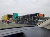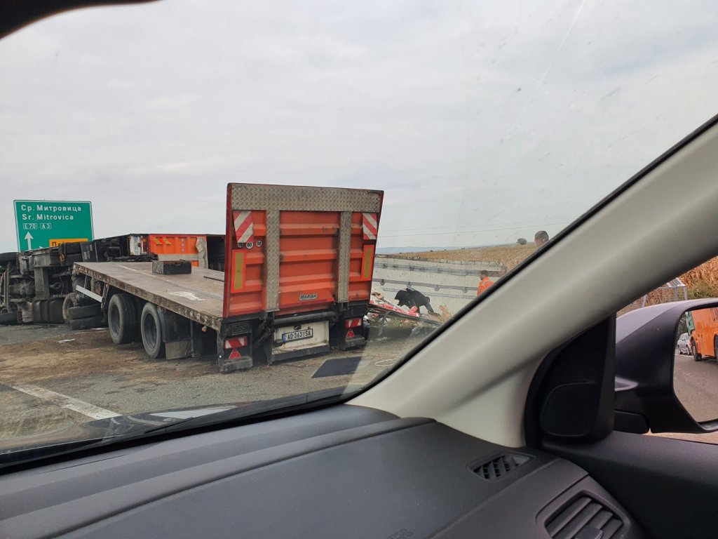 OTEŽANI USLOVI KRETANjA I GUŽVA NA AUTO-PUTU: Obustava saobraćaja zbog prevrtanja kamiona u smeru Beograd - Batrovci (FOTO)