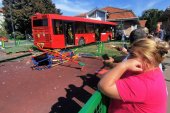 PRVE SLIKE I SNIMCI SA MESTA NESREĆE U ZEMUNU: Autobus uleteo u dečji park, vozač u bekstvu (FOTO/VIDEO)