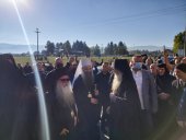 BRATSKI ZAGRLjAJ: Vladika Metodije dočekuje goste pred manastirom - stigao i gradonacelnik Nikšića (FOTO / VIDEO)