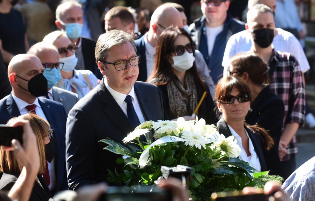 PREDSEDNIK NA SAHRANI IVANA TASOVCA: Vučić nosi veliki buket belog cveća (FOTO)