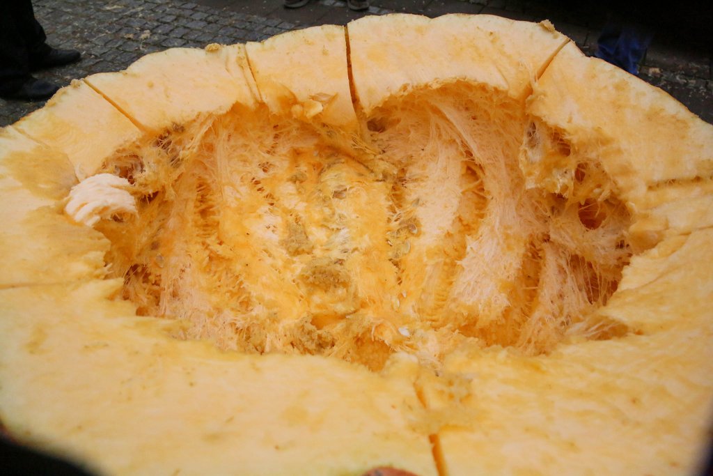 TESTEROM I SEKIROM SEČENE NAJVEĆE TIKVE: Džinovske bundeve sa manifestacije “Dani ludaje” u Kikindi rasečene radi semena (FOTO)