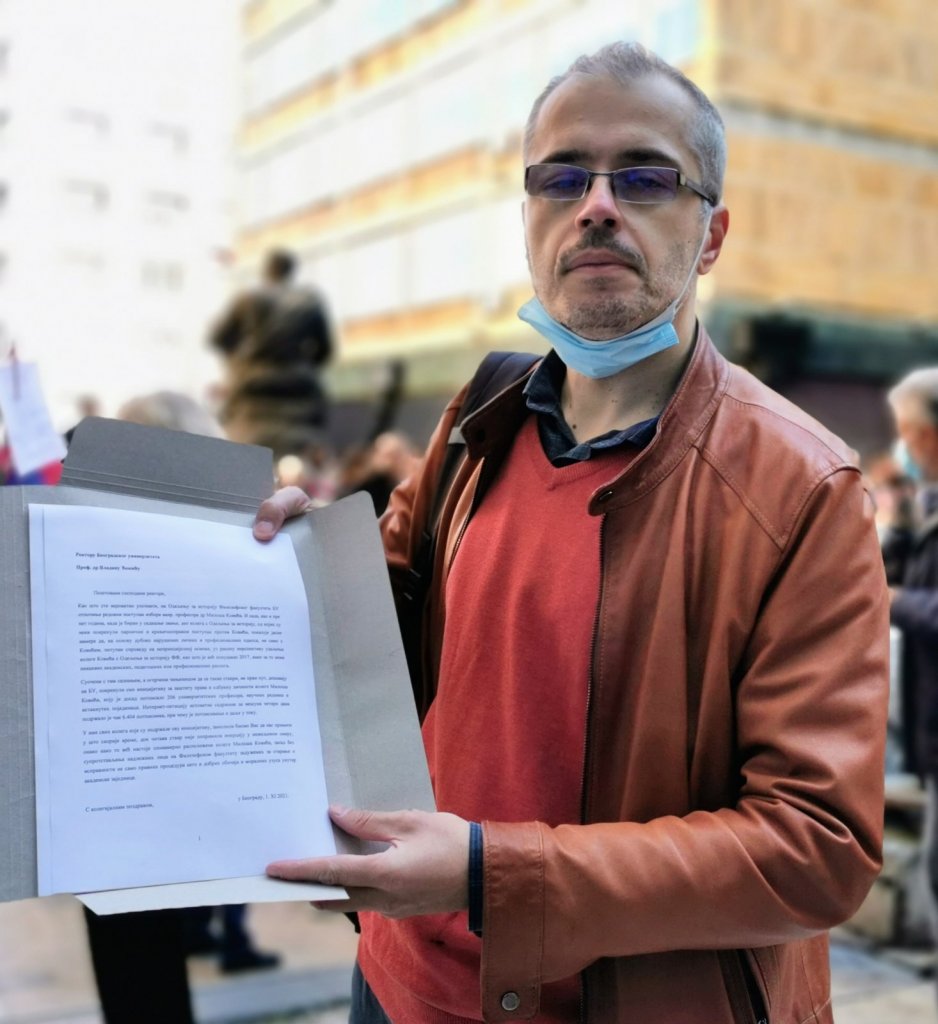 PROTEST U ZNAK PODRŠKE MILOŠU KOVIĆU: Studenti razvili transparent na platou ispred Filozofskog fakulteta (FOTO/VIDEO)