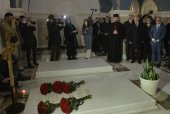 GUBERNATOR SANKT PETERBURGA U BEOGRADU: Položeni venci na grob patrijarha Irineja u kripti Hrama (FOTO)