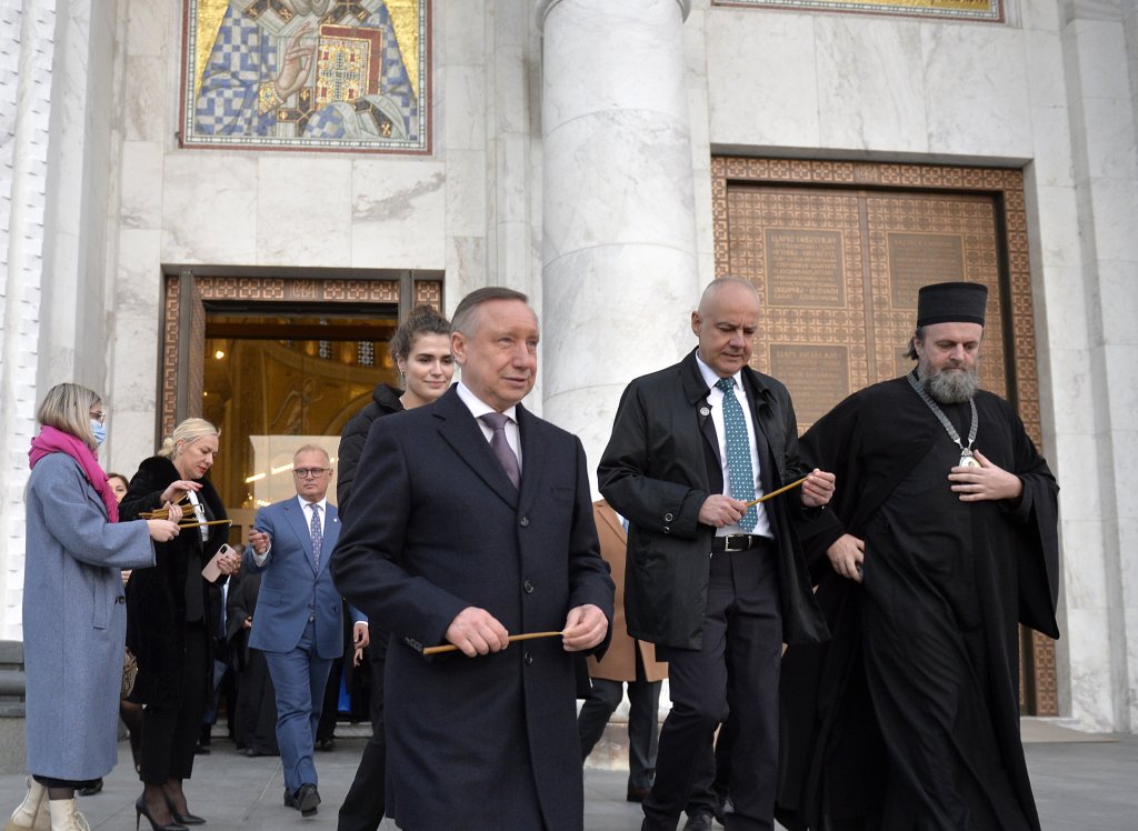GUBERNATOR SANKT PETERBURGA U BEOGRADU: Položeni venci na grob patrijarha Irineja u kripti Hrama (FOTO)
