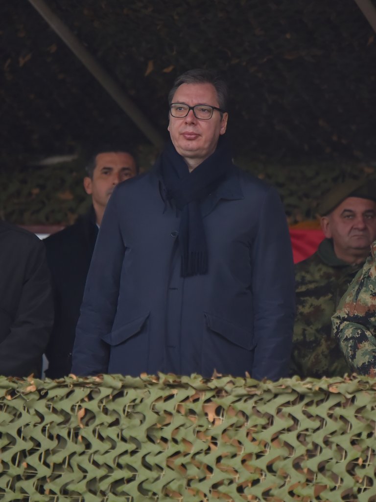 VUČIĆ U NIŠU: Predsednik prisustvovao prikazu rada diviziona samohodnih haubica "NORA B-52 M15" (FOTO)