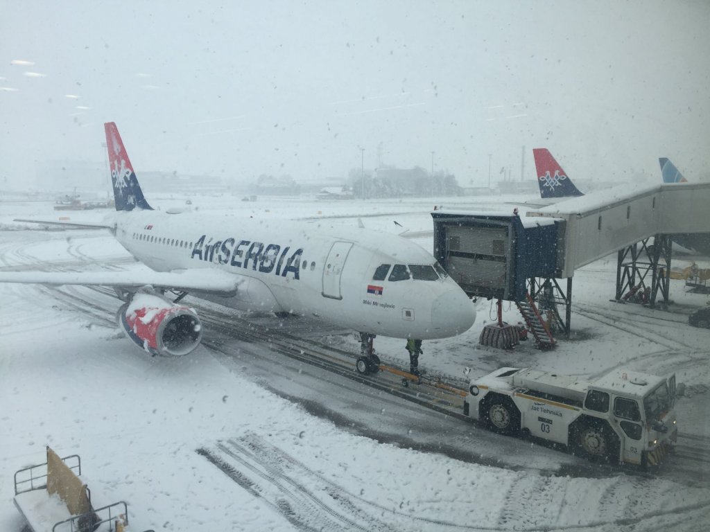 BEOGRADSKI AEORODROM POD SNEGOM: Avioni prekriveni belim pokrivačem
