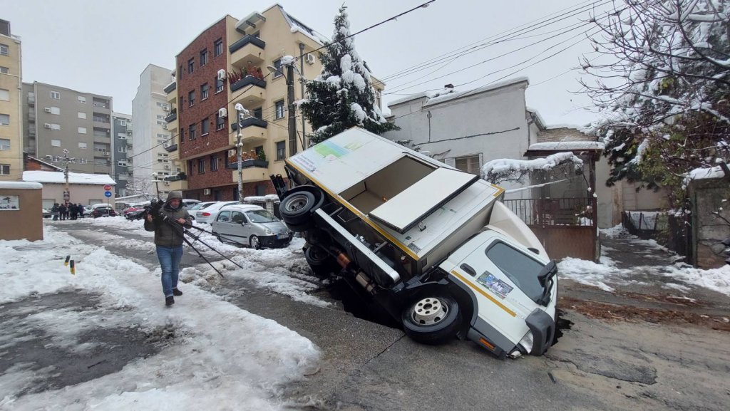 USPEO SAM DA IZAĐEM NA BOČNA VRATA: Vozač kamiona koji je propao kroz rupu na Voždovcu "Sve se desilo u sekundi" (FOTO/VIDEO)
