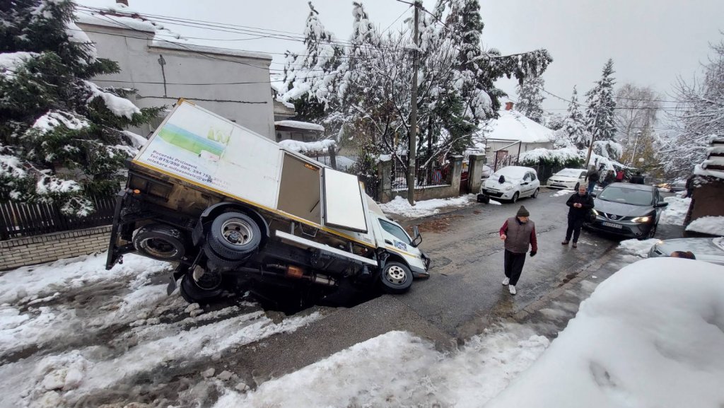 USPEO SAM DA IZAĐEM NA BOČNA VRATA: Vozač kamiona koji je propao kroz rupu na Voždovcu "Sve se desilo u sekundi" (FOTO/VIDEO)