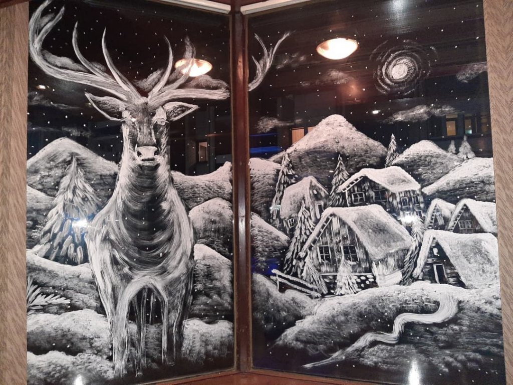 ZIMSKA IDILA NA IZLOZIMA: U Vršcu još nije pao prvi sneg, ali ga je Dušanka Glumac „donela“ svojim oslikavanjem