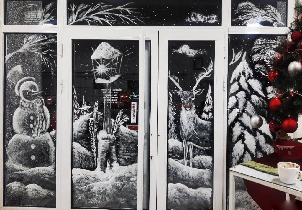ZIMSKA IDILA NA IZLOZIMA: U Vršcu još nije pao prvi sneg, ali ga je Dušanka Glumac „donela“ svojim oslikavanjem