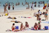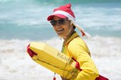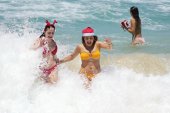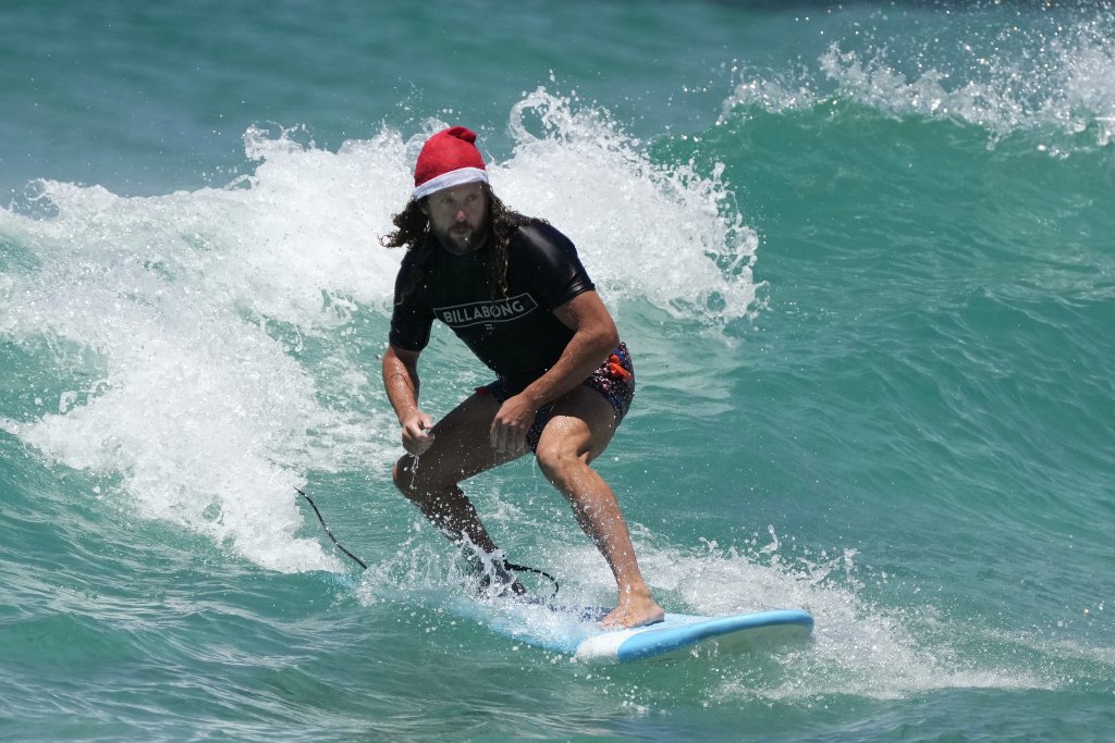 BOŽIĆ U SIDNEJU: Ljudi uživaju na plaži - surfuje se i pliva sa kapicom Deda Mraza (FOTO)