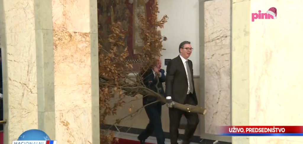 BADNjI DAN U PREDSEDNIŠTVU: Vučić uneo badnjak, deci iz Hrvatske poručio da u Srbiji imaju dom (VIDEO)