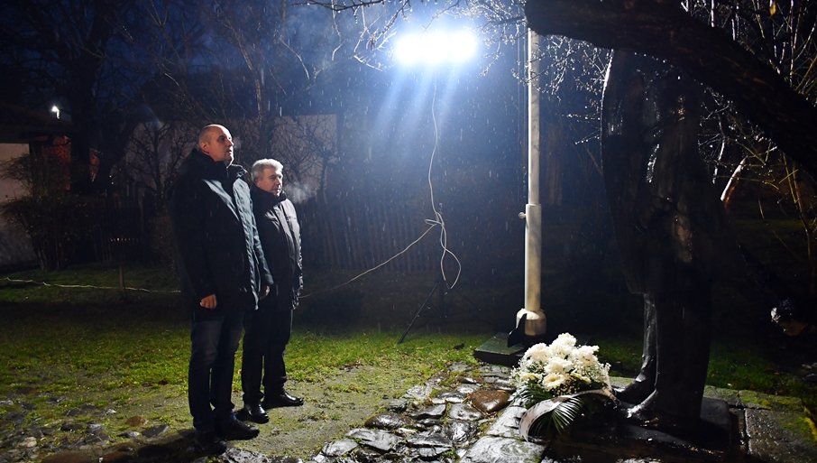 Vladimir Veličković i Milan Uruković, predsednik opštine i pred. Skupštine opštine položili su venac na spomen bistu Stevana Mokranjca