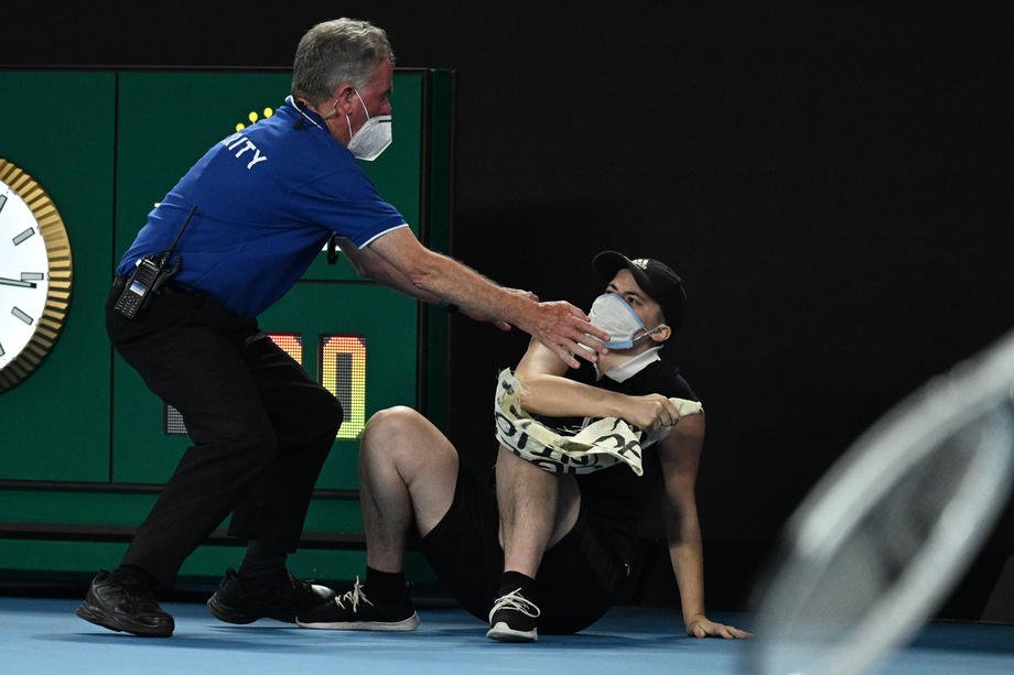 SKRENULA PAŽNjU NA UŽASNE USLOVE U HOTELU ČIJI GOST JE BIO I ĐOKOVIĆ: Ovako je protestantkinja uskočila na teren Rod Lejver arene (FOTO)