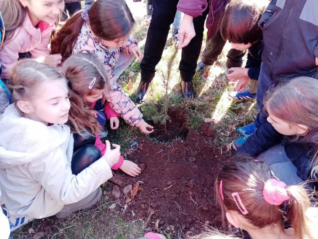 AKCIJA „ZASADI DRVO” U PARAĆINU: Najmlađi osnovci ukrasili belim borom školska dvorišta (foto)