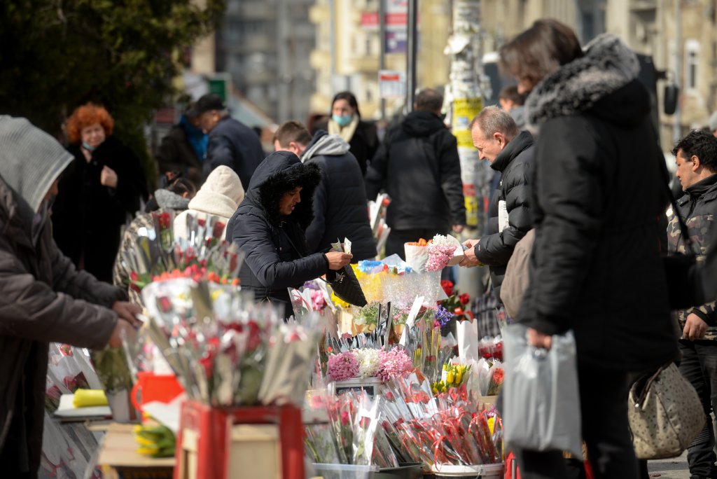 BEOGRAD U ZNAKU CVEĆA: Muškarci kupuju bukete damama povodom 8. marta (FOTO)