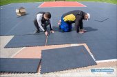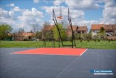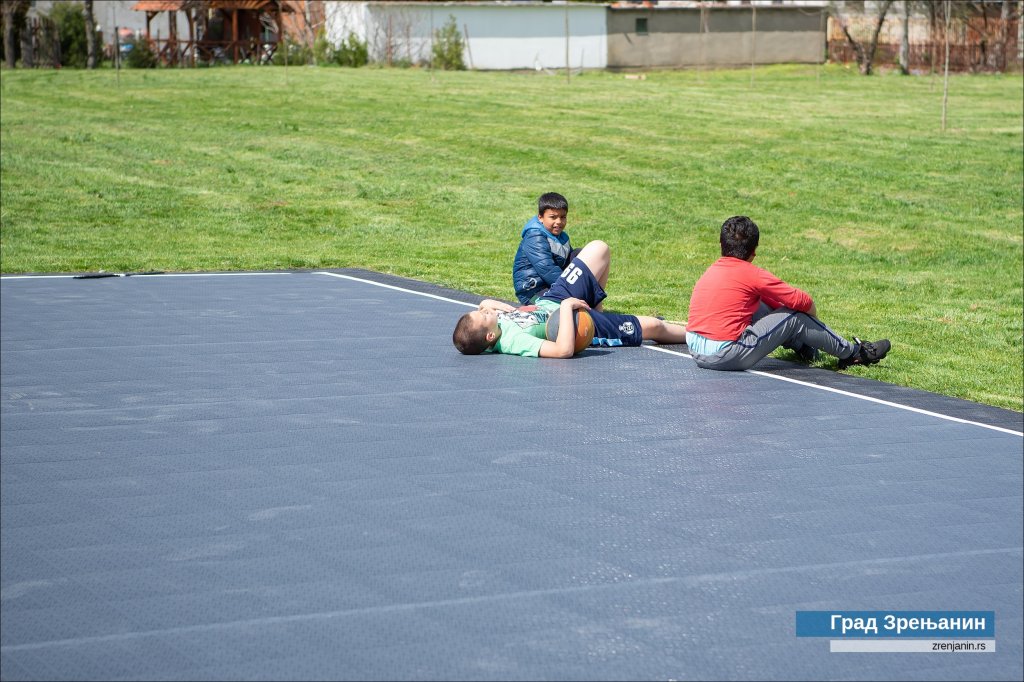 ZELENO POLjE SA PLAVIM KOŠARKAŠKIM TERENOM: Završni radovi na izradi terena u zrenjaninskom naselju (FOTO)