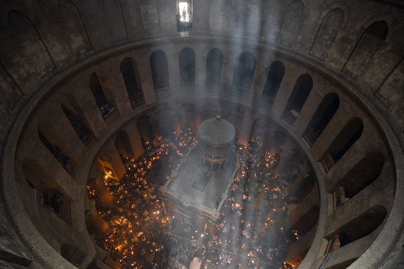BLAGODATNI OGANj SIŠAO U HRAM GROBA GOSPODNjEG: Ceremonija u Jerusalimu u svetlu pritisaka izraelskih vlasti na crkvu (FOTO/VIDEO)