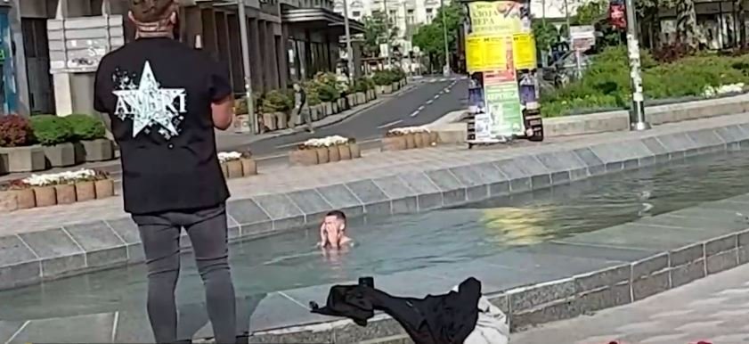 PRVOMAJSKO KUPANjE U FONTANI: Nesvakidašnja scena u Beogradu, muškarac uskočio u vodu na Trgu Nikole Pašića (FOTO)