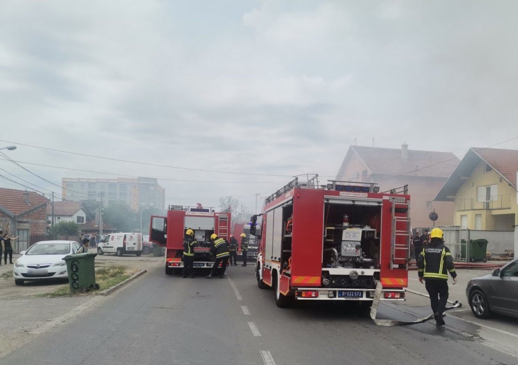 VELIKI POŽAR U ZEMUNU: Gori magacin od 500 kvadrata, gust dim izlazi kroz krov (FOTO)