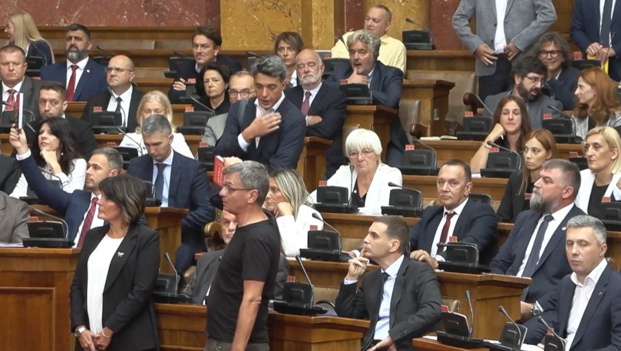 BITNIJE IM GDE ĆE DA SEDE OD NARODA NA KiM: Ćuta se naljutio zbog stolice i bojkotuje sednicu - stoji zajedno sa svojom koleginicom (FOTO)