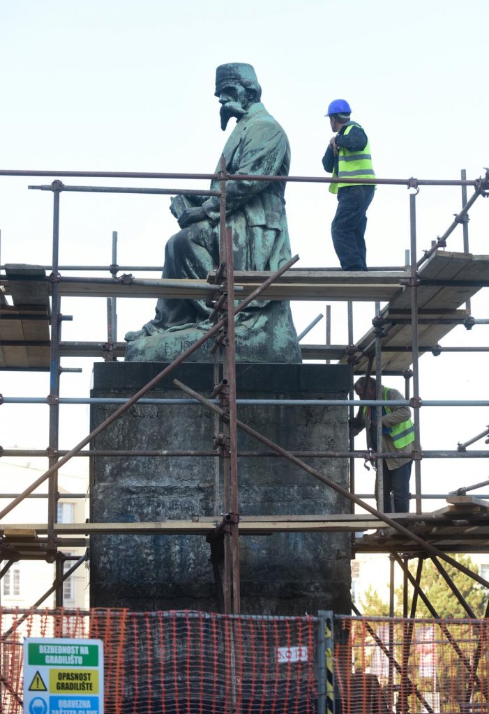 SKELE OPKOLILE VUKA: Majstori skidaju ploče sa postamenta spomenika reformatora Srpskog jezika na uglu Bulevara i Ruzveltove